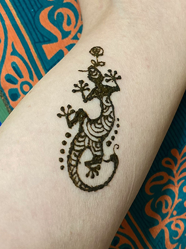 ・ヘナという植物の葉をペーストにし、肌に模様を描くことです。